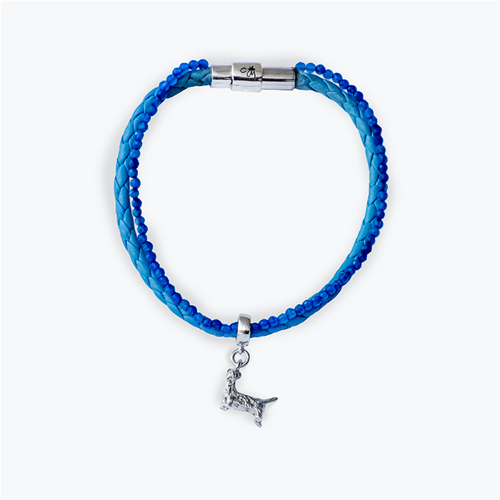 A happy symbol in the shape of your best friend in silver 925 combined with fine work in soft and braided leather and fine gemstones together as a bracelet. A jewel to be stylish with your favorite pet.