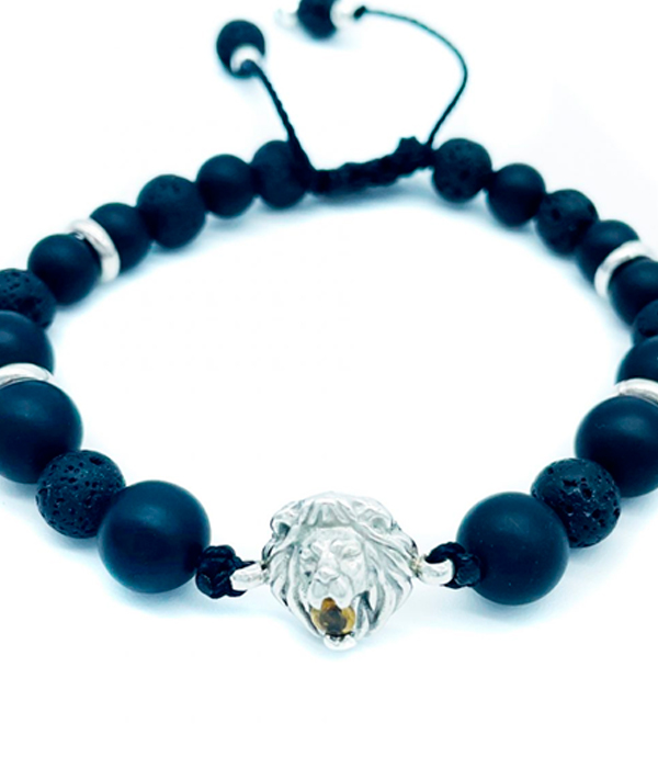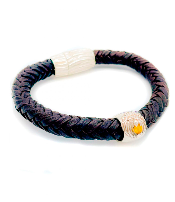 PULSERA GEMA CITRINA CABEZA DE LEON