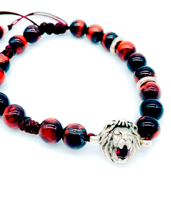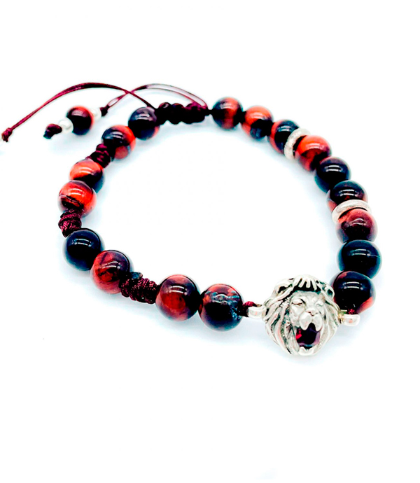 PULSERA GEMA GRANATE CABEZA DE LEON