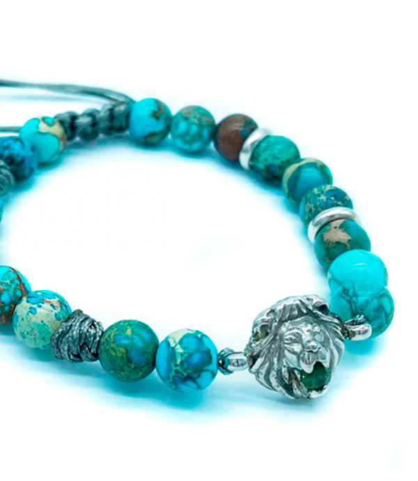 PULSERA GEMA PRASIOLITA CABEZA DE LEON