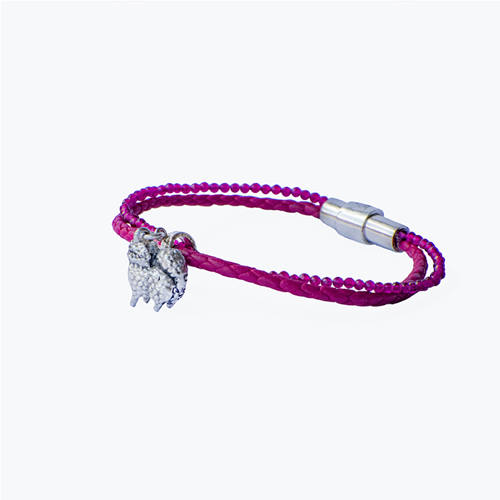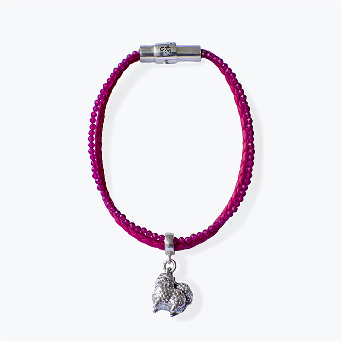 A happy symbol in the shape of your best friend in silver 925 combined with fine work in soft and braided leather and fine gemstones together as a bracelet. A jewel to be stylish with your favorite pet.