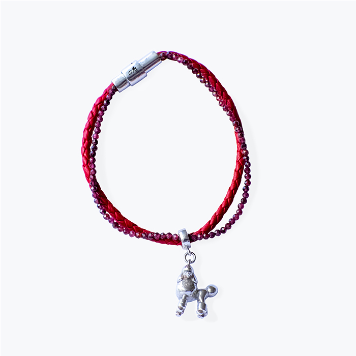 A happy symbol in the shape of your best friend in silver 925 combined with fine work in soft and braided leather and fine gemstones together as a bracelet. A jewel to be stylish with your favorite pet.