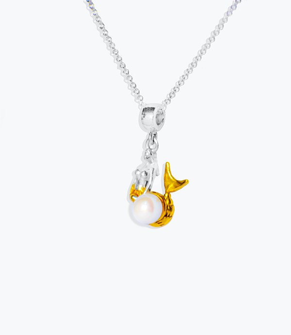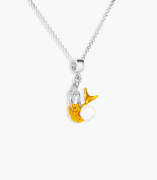 Mermaids represent peace, tranquility, love and sunshine. In 925 sterling silver and 24-K gold plated, with 5 microns in the tail, and a white pearl. Chain length 45cm . -extension 5cm
