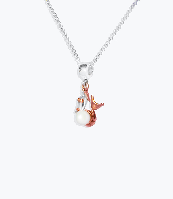 Wrapped in love, tenderness and magic; every day and in every moment. In 925 sterling silver, rose gold plated with 5 microns in the tail and a white pearl. Length of the chain 45 cm - extension 5 cm.